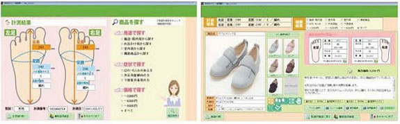 DreamGP can help you develop your own Shoe Navigation System. Below are images of the monitor from the system used by a leading shoe manufacturer from Japan. They have implemented our Footstep PRO and Shoe Navigation System at their over 100 stores all over Japan and drastically increased their annual sales and customer satisfaction.
